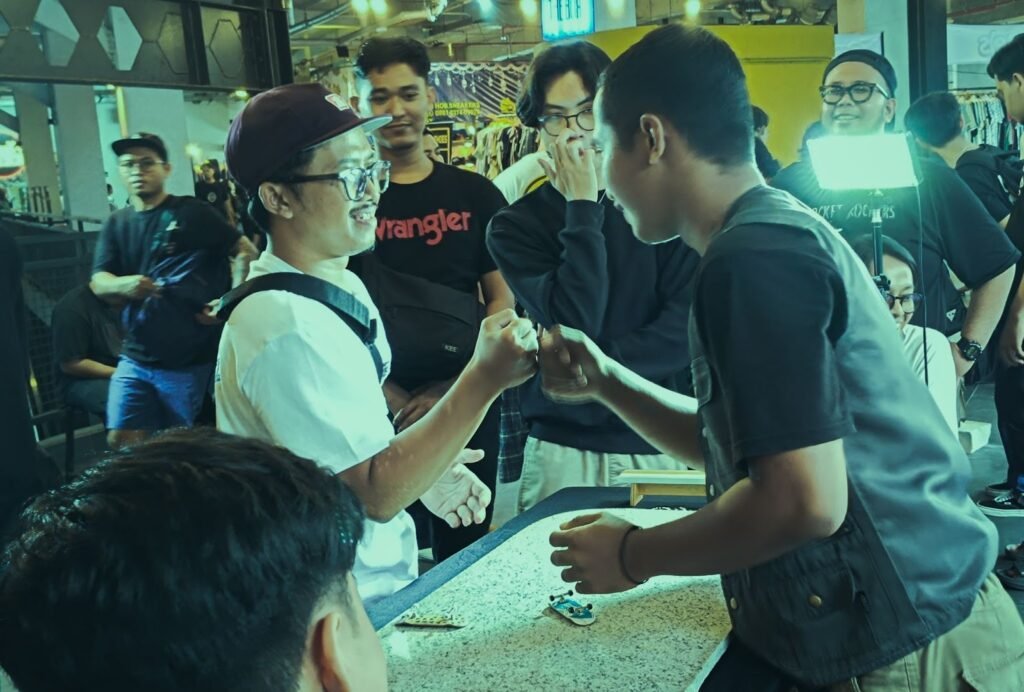 “Menarik juga sih kalo diliat-liat. Tadi habis belanja thrift langsung coba untuk liat kaya gimana sih fingerboarding itu. Ternyata ga semudah yang dibayangkan dan butuh kecepatan tangan sendiri”. Ujar Johan saat diwawancarai.